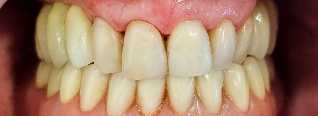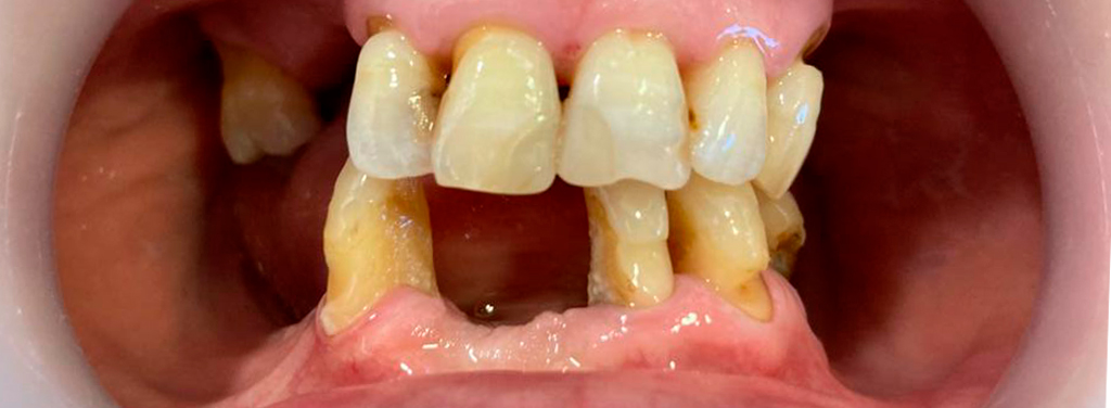 Reabilitação oral com recurso a regeneração óssea e gengival, seguida de colocação de implantes.